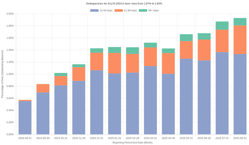 Delinquencies for Ally 2024-2 have risen from 1.87% to 1.93%.2025-09-18