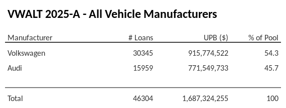 VWALT 2025-A has 100% of its pool in Volkswagen automobiles.2025-09-22