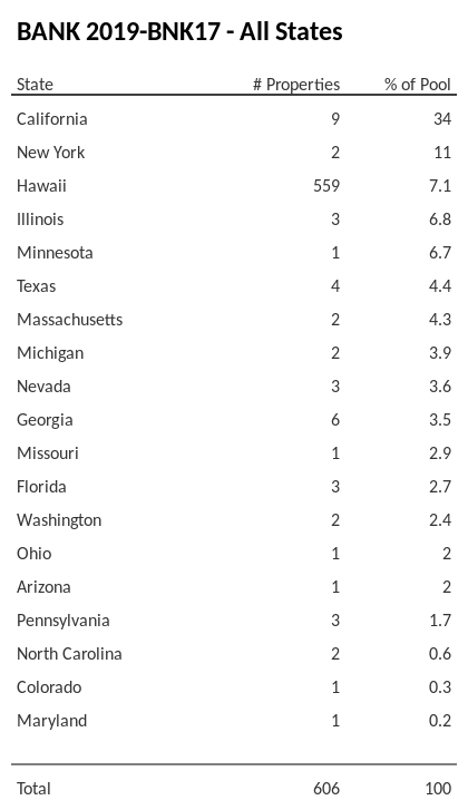BANK 2019-BNK17 has 34% of its pool located in the state of California.