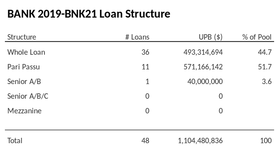 BANK 2019-BNK21 has 51.8% of its pool as Pari Passu.