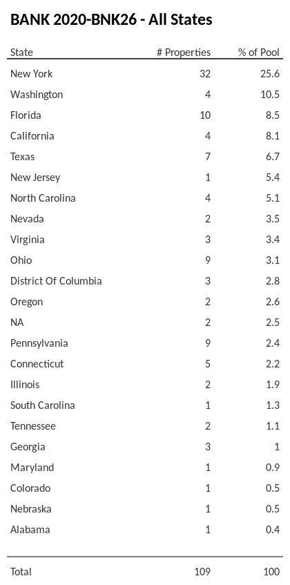 BANK 2020-BNK26 has 25.6% of its pool located in the state of New York.