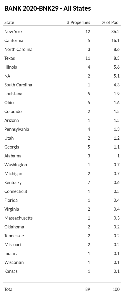 BANK 2020-BNK29 has 36.2% of its pool located in the state of New York.