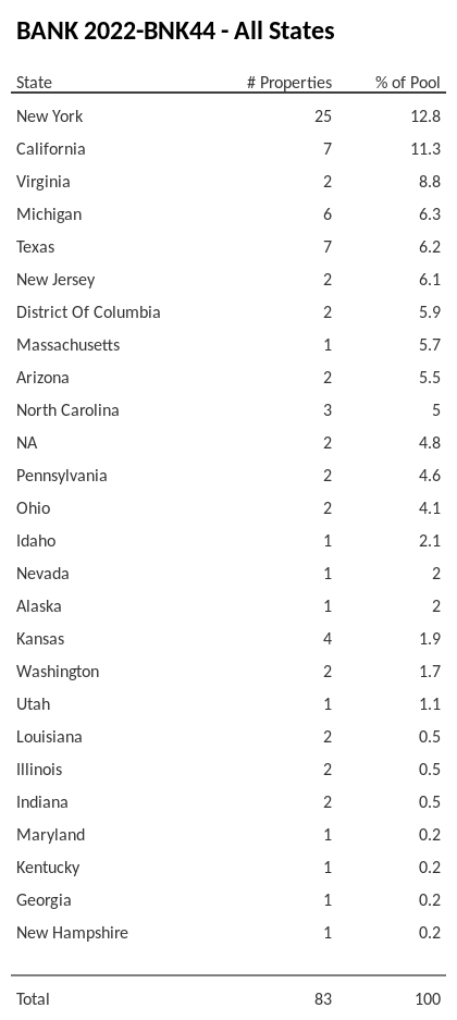 BANK 2022-BNK44 has 12.8% of its pool located in the state of New York.
