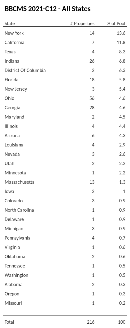 BBCMS 2021-C12 has 13.7% of its pool located in the state of New York.
