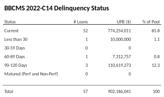 BBCMS 2022-C14 has 85.8% of its pool in "Current" status.