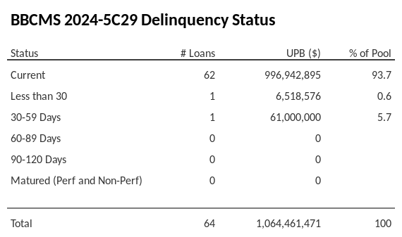 BBCMS 2024-5C29 has 93.7% of its pool in "Current" status.