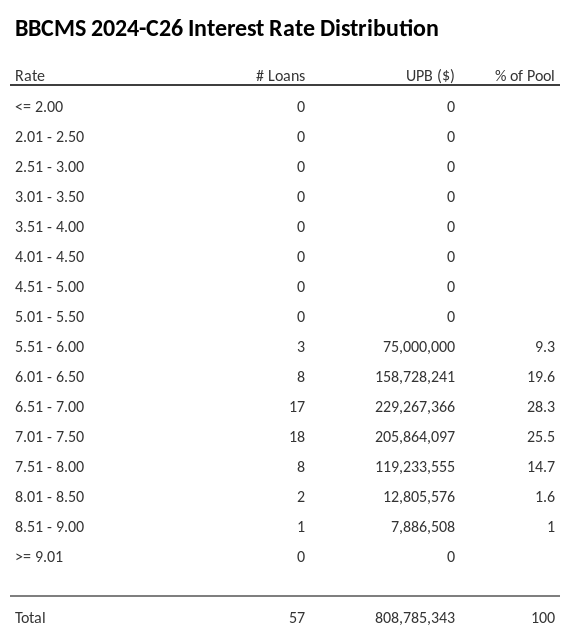 BBCMS 2024-C26 has 28.3% of its pool with interest rates 6.51 - 7.00.