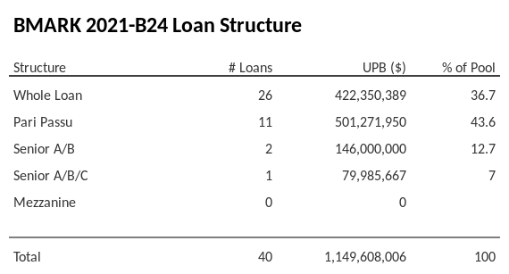 BMARK 2021-B24 has 43.6% of its pool as Pari Passu.
