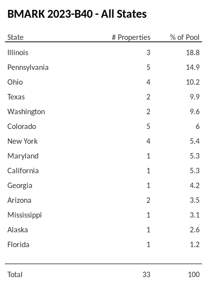 BMARK 2023-B40 has 18.8% of its pool located in the state of Illinois.