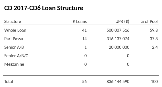 CD 2017-CD6 has 37.8% of its pool as Pari Passu.