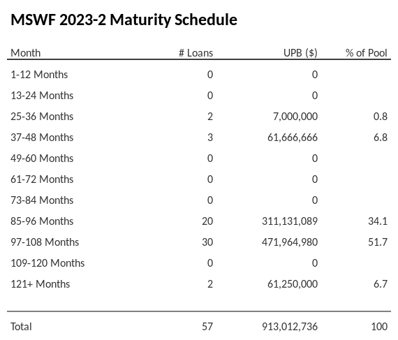 MSWF 2023-2 has 51.7% of its pool maturing in 97-108 Months.