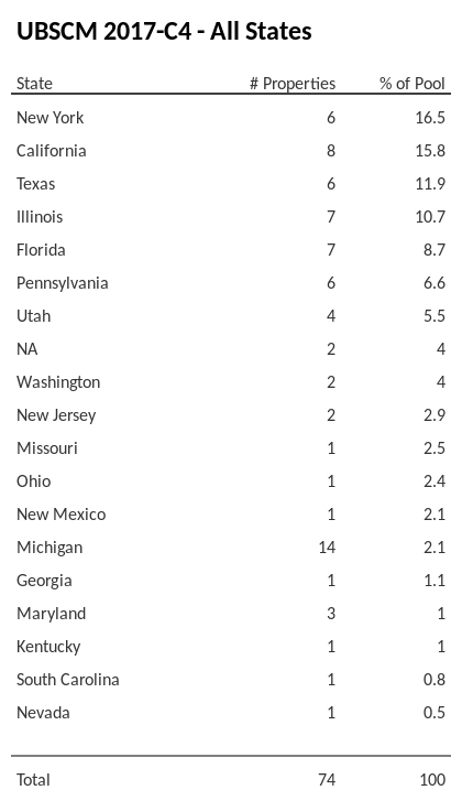 UBSCM 2017-C4 has 16.5% of its pool located in the state of New York.
