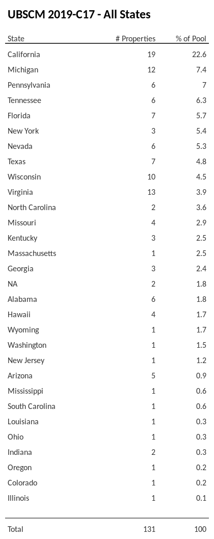UBSCM 2019-C17 has 22.6% of its pool located in the state of California.