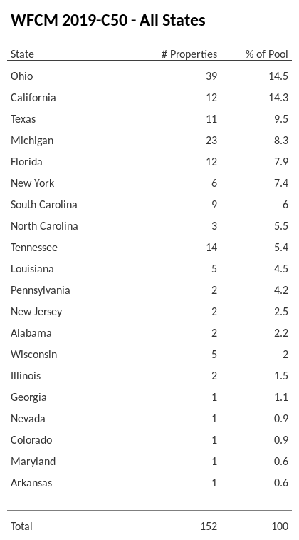 WFCM 2019-C50 has 14.5% of its pool located in the state of Ohio.