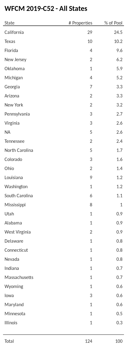 Geographic Distribution - WFCM 2019-C52 - All States